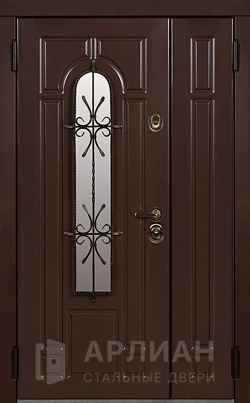 Фото «Металлическая двустворчатая дверь со стеклом и кованой решеткой №15»