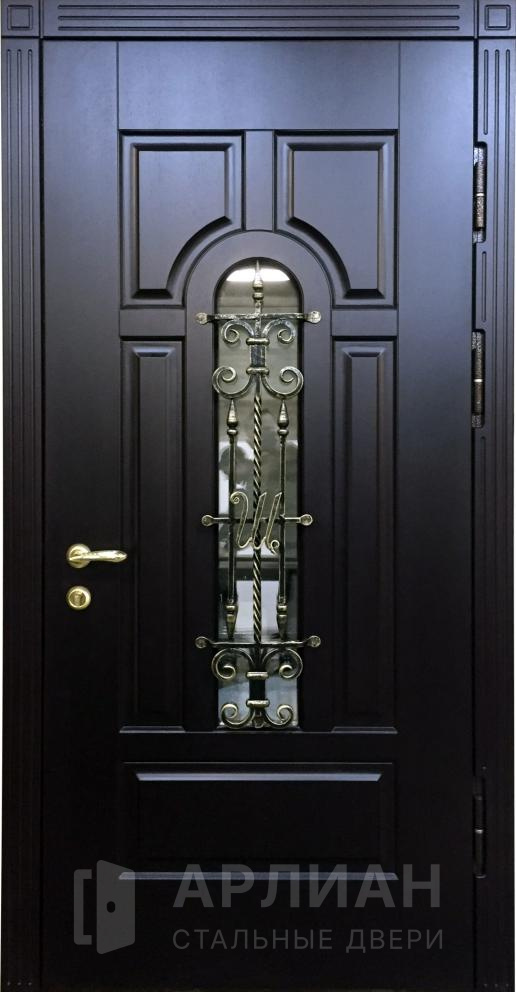 Полуторная входная дверь с элементами ковки и стеклом №72