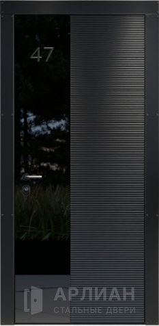 Входная дверь черный кварц с зеркалом в стиле лофт №8
