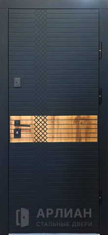 Черная дверь в стиле Модерн с панелью из шпона №14
